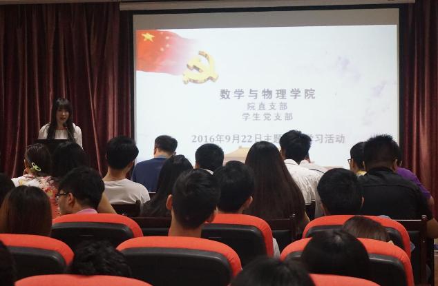 (通讯员:孙宇涛、李春霖)9月22日下午16:30,澳门网投官方网站主题党日学习活动在数理楼二楼会议室举行,院党委书记李宇凯、院直支部的老师以及学生党支部的同学们参加此次活动。