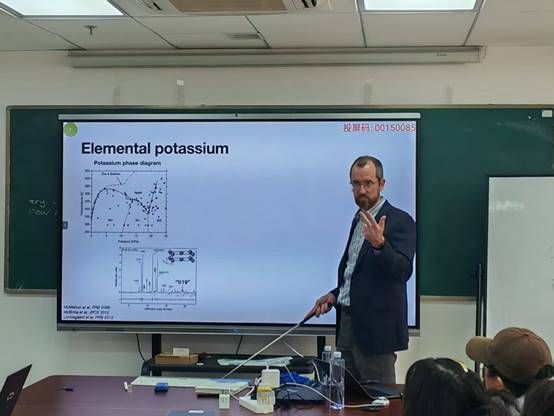 2025年12月2日下午, Andreas Hermann教授在东教楼1104学术报告厅为澳门网投官方网站部分物理学专业和材料与化工专业的博士生、硕士生和青年教师作了题为“From DFT to thermodynamic modelling”的学术报告。报告以近期关于“同时具备固体与液体特征的新物态”的报道为切入点,系统阐述他们研究团队在高压物理与计算材料学领域的系列工作。Andreas Hermann教授从钾的高压相图与非共格宿主—客体结构详细阐述了“链熔融”作为一种热力学中间态的证据与机制,提出了碱金属高压相可作为部分电子化合物的观点,展示了如何利用机器学习分子动力学模拟预测相变、熔化线极值及热力学性质,介绍了基于Bragg-Williams模型的两态热力学理论,解释了金属熔化线中的临界行为。此外,Andreas Hermann教授还介绍了第一性原理计算在高压冰(VII–VIII–X)相变研究中的应用,探讨了隐藏临界点与相图拓扑等前沿问题,展望了机器学习在预测复杂材料行为方面的潜力。报告期间,Andreas Hermann教授与在场师生就高压相变机理、机器学习势函数开发等相关问题展开了深入讨论并细致回答了师生提问。