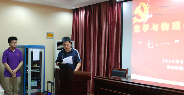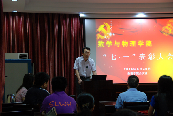 2014年6月30日上午10点半,澳门网投官方网站在基础楼二楼报告厅召开了庆祝建党93周年暨“七一”表彰大会,校党委组织部副部长刘治国、院党委书记李宇凯、副院长张光勇、副书记李杰出席表彰大会。参加表彰大会的还有教工党员和学生党员代表。