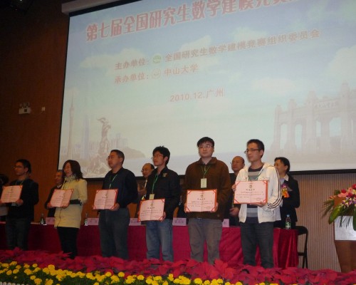 2010年9月17日,全国第七届研究生数学建模竞赛颁奖仪式在广州中山大学举行。澳门网投官方网站院长刘安平教授、副院长彭放教授,校研工部李红丽副部长以及4名一等奖获得者参加此次活动。