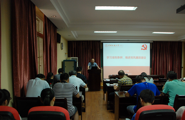 首先,李宇凯同志对一个《党章》、两个《准则》、三个《条例》分层次有逻辑的进行解读;接着,他从“党的作风关系到党的形象、关系到人心向背、关系到党的生死存亡”的高度讲述了推进党风廉政建设的重大意义,并结合实际,深入浅出的阐述了当前党风廉政建设的形势和面临的任务。