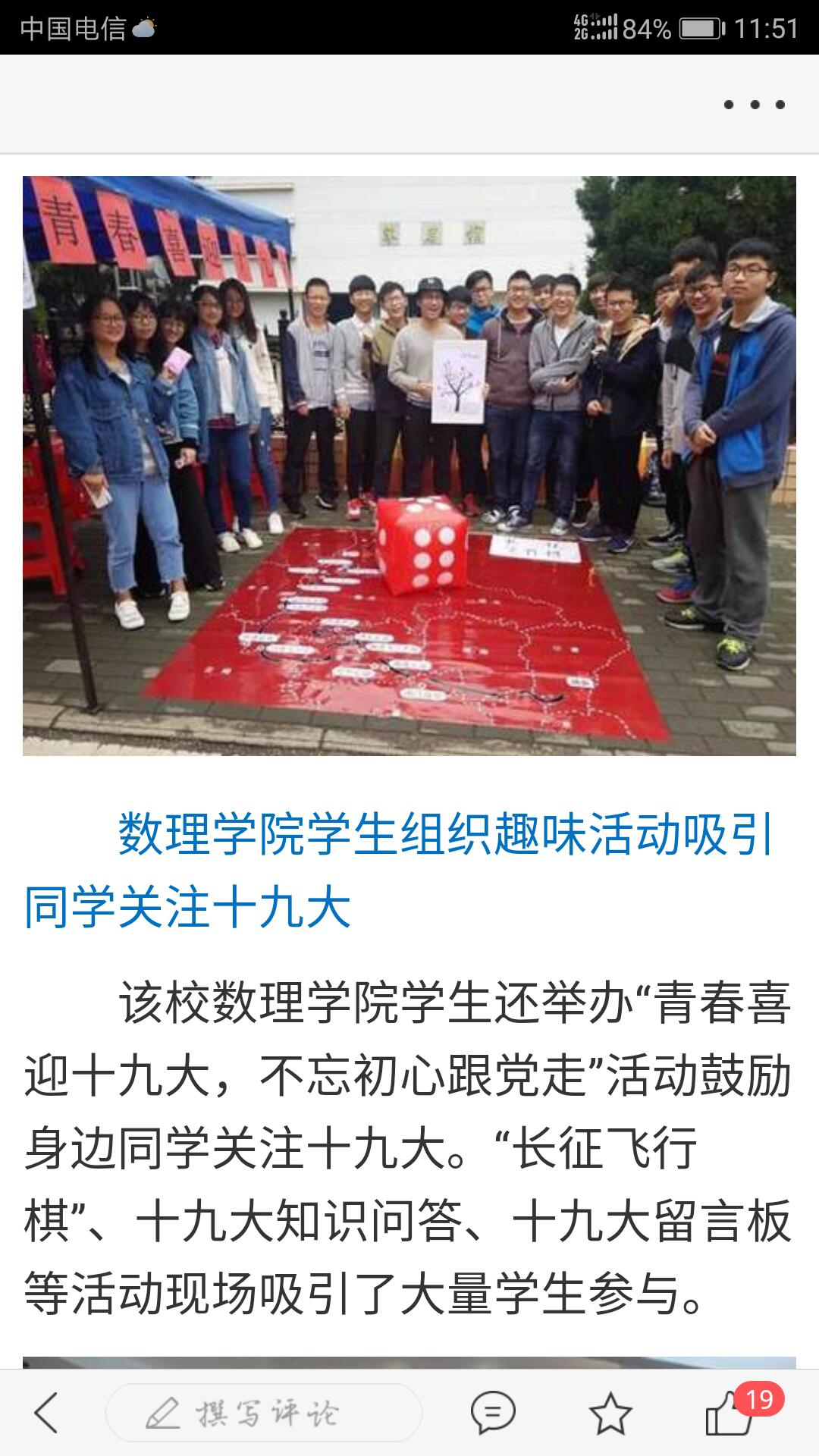 2017年10月21日,光明日报客户端报道《澳门网投官方网站掀起学习党的十九大报告热潮》,其中澳门网投官网“青春喜迎十九大,不忘初心跟党走”活动被报道。详见链接:https://s.cloud.gmw.cn/2016/c/2017-10-21/972932.shtml