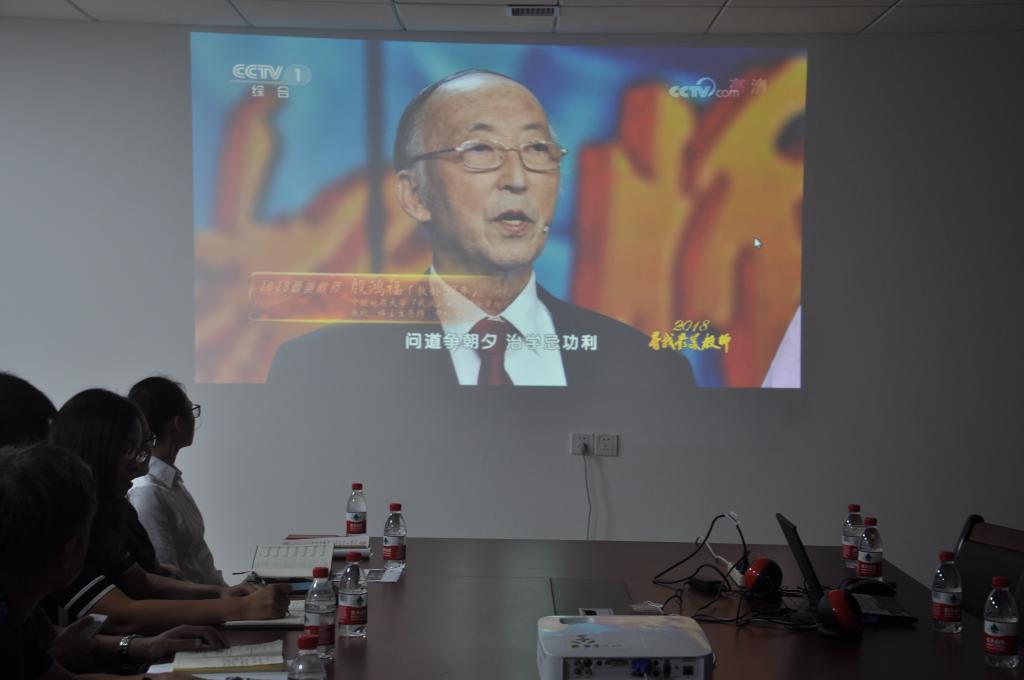 2018年9月10日晚8点,澳门网投官方网站师生代表在教学综合大楼A1505会议室共聚一堂,观看中央电视台综合频道举办的“寻找最美教师”颁奖晚会。学院党政领导、师生代表参加此次座谈会。观看颁奖典礼后,殷鸿福院士身上的矢志报国、求真务实、潜心育人、为人修行等优秀的品质令现场每一位师生深受感动和敬佩。