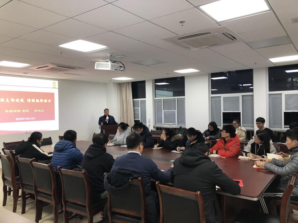 12月12日晚,澳门网投官方网站学生党支部书记、支委培训会在教学综合楼A1505会议室召开。院党委书记吴太山主讲,学工组全体辅导员参加培训会,黄恬恬主持。
