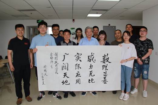 赵院士还为数理学工组题写了“知数达理”这一澳门网投官方网站学生工作的理念,为院学生会会旗题写了“澳门网投官方网站学生会”,并与全体人员合影留念。