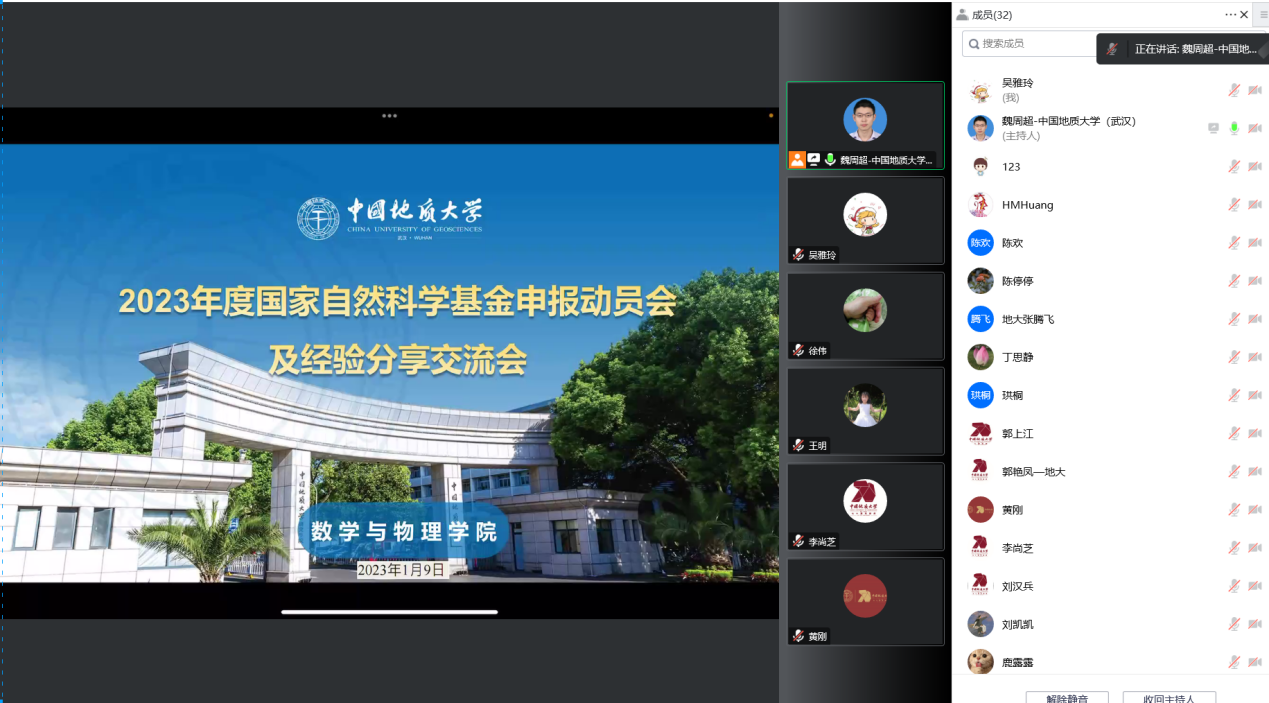为提高国家自然科学基金项目申请质量与成效、提升学院科研建设水平,澳门网投官网于2023年1月9日以线上的形式召开了2023年度国家自然科学基金项目申请动员会和经验交流会,学院党委书记吴太山,院长郭上江,副院长魏周超、黄刚、张保成以及学院40多名中青年骨干教师参加会议。会议由魏周超副院长主持。