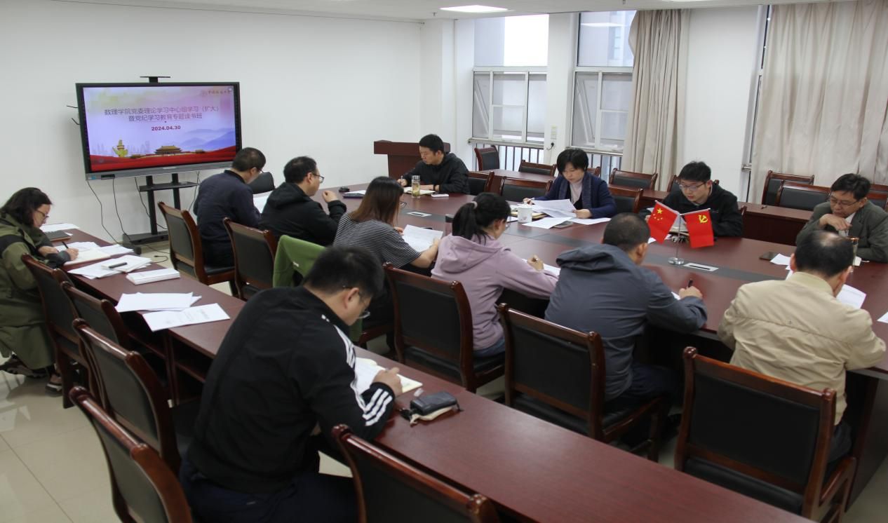 4月30日下午,澳门网投官方网站党委在东区教学综合楼A1505召开党委理论学习中心组(扩大)学习会议暨党纪学习教育专题读书班。院党委书记于晓舟主持会议,学院党委理论学习中心组成员、教工党支部书记、学生党支部书记代表等参加学习。