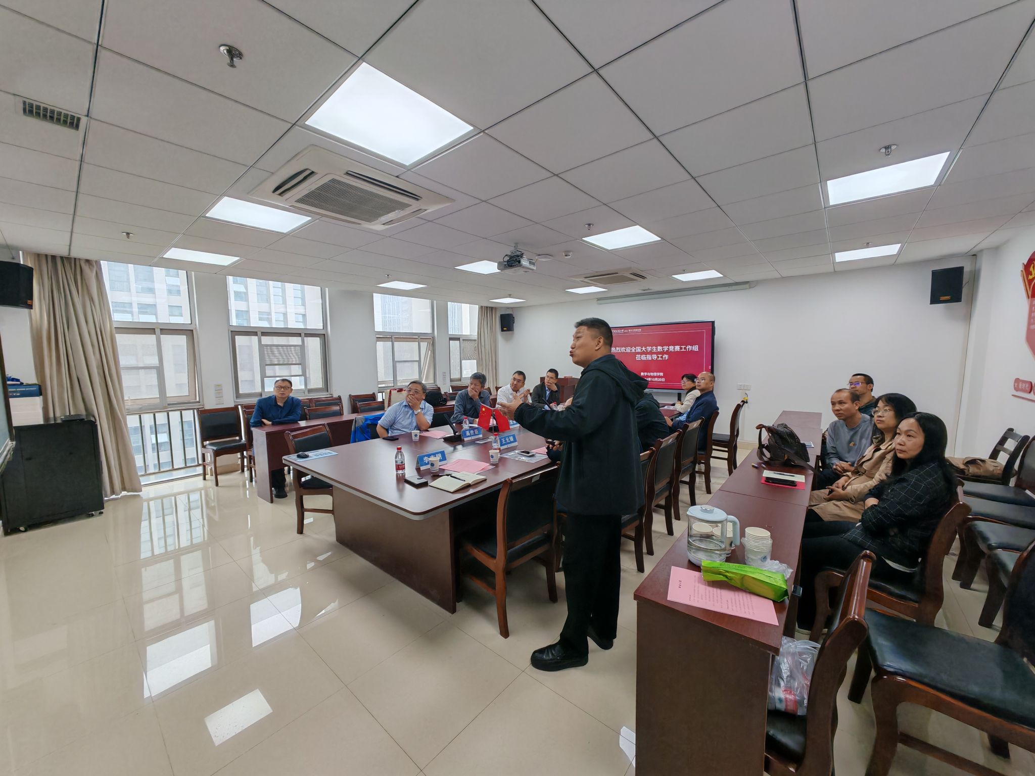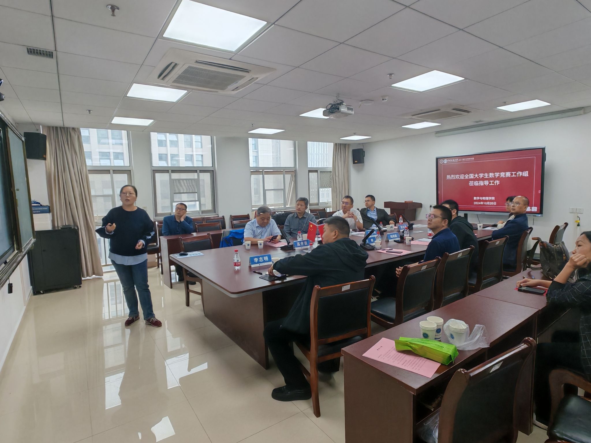 魏周超代表学院对佘志坤教授一行表示热烈欢迎,并重点围绕高水平学科竞赛成果培育,介绍了学校和学院在指导教师团队建设、校级赛事组织、赛前集训、专家指导等方面的具体工作举措。数学竞赛负责人李志明老师和王元媛老师分别从竞赛培训、校内选拔、组织参赛报名、获奖成果和政策支持等方面详细汇报了澳门网投官网在组织全国大学生数学竞赛中的相关工作和取得的成绩。