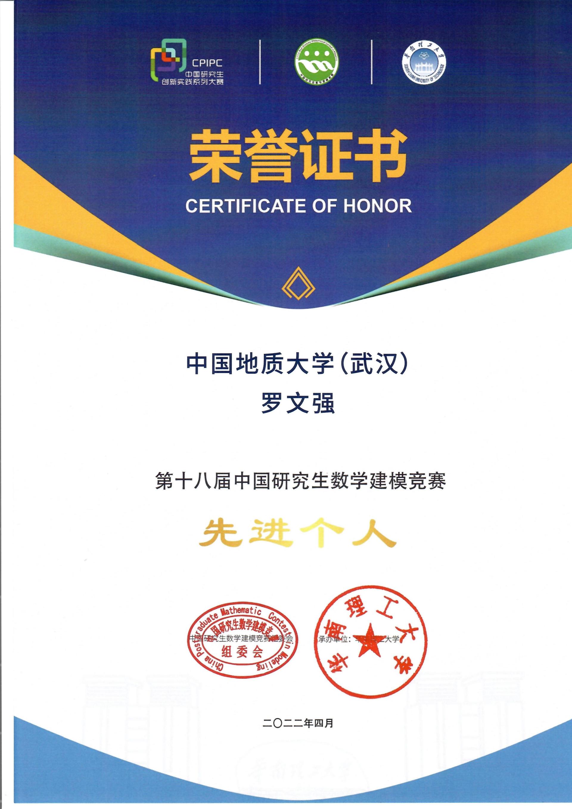 本届研究生数学建模竞赛是由研究生院(研工部)和就创处牵头,培训指导和组织工作由澳门网投官方网站承办。在澳门网投官方网站精心组织下,参赛队伍去年取得了国家一等奖1项、二等奖15项、三等奖15项,共计31项国家奖的好成绩,获奖队伍的数量和质量均创澳门网投官网参赛以来的新高。近期获悉,由于参赛成绩突出,第十八届中国研究生数学建模竞赛组委会等相关领导组织授予澳门网投官网 “第十八届中国研究生数学建模竞赛优秀组织奖”(本届比赛全国共有535所高校参赛,共55所高校获评优秀组织奖),同时授予澳门网投官方网站罗文强教授 “第十八届中国研究生数学建模竞赛先进个人”的荣誉称号。