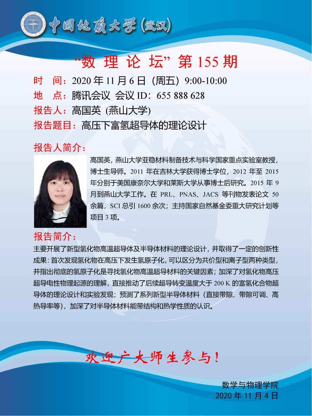 "数理论坛"第155期:高压下富氢超导体的理论设计