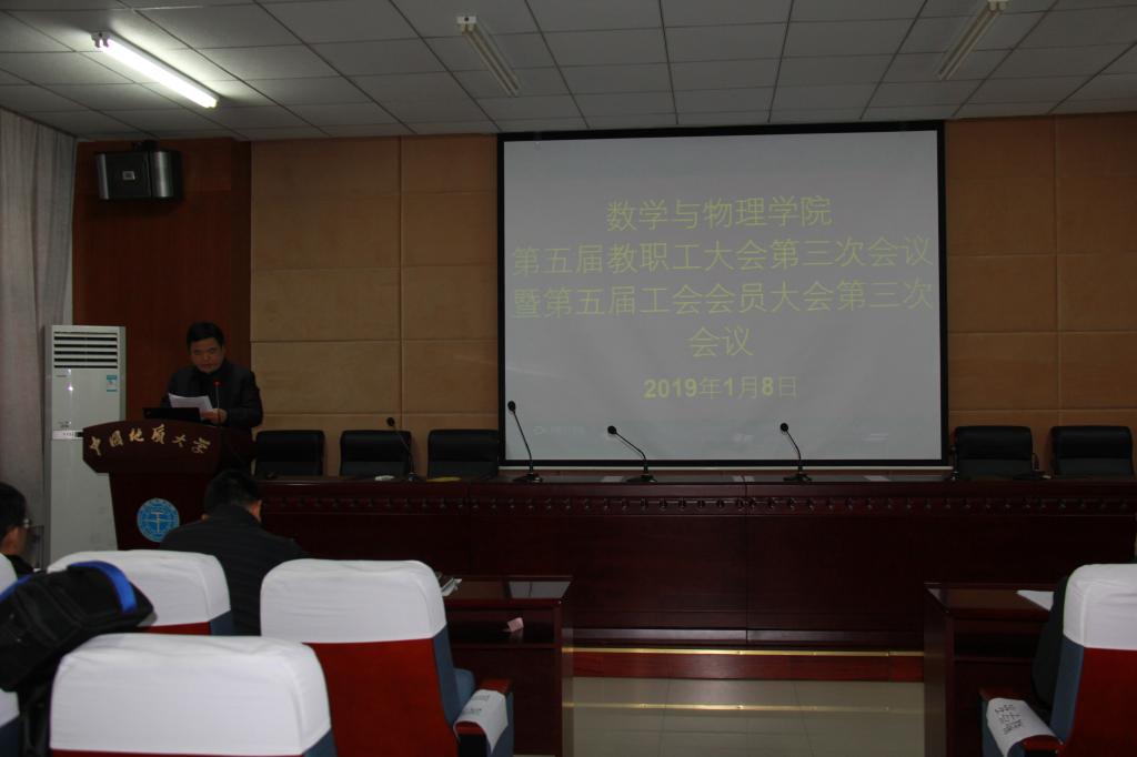 2019年1月8日下午,澳门网投官方网站第五届教职工大会第三次会议暨工会会员大会第三次会议在学海楼109会议室隆重召开。校党委副书记王林清、校工会常务副主席喻芒清应邀出席大会,学院党政领导及全体教职工参加会议。大会分两阶段进行。