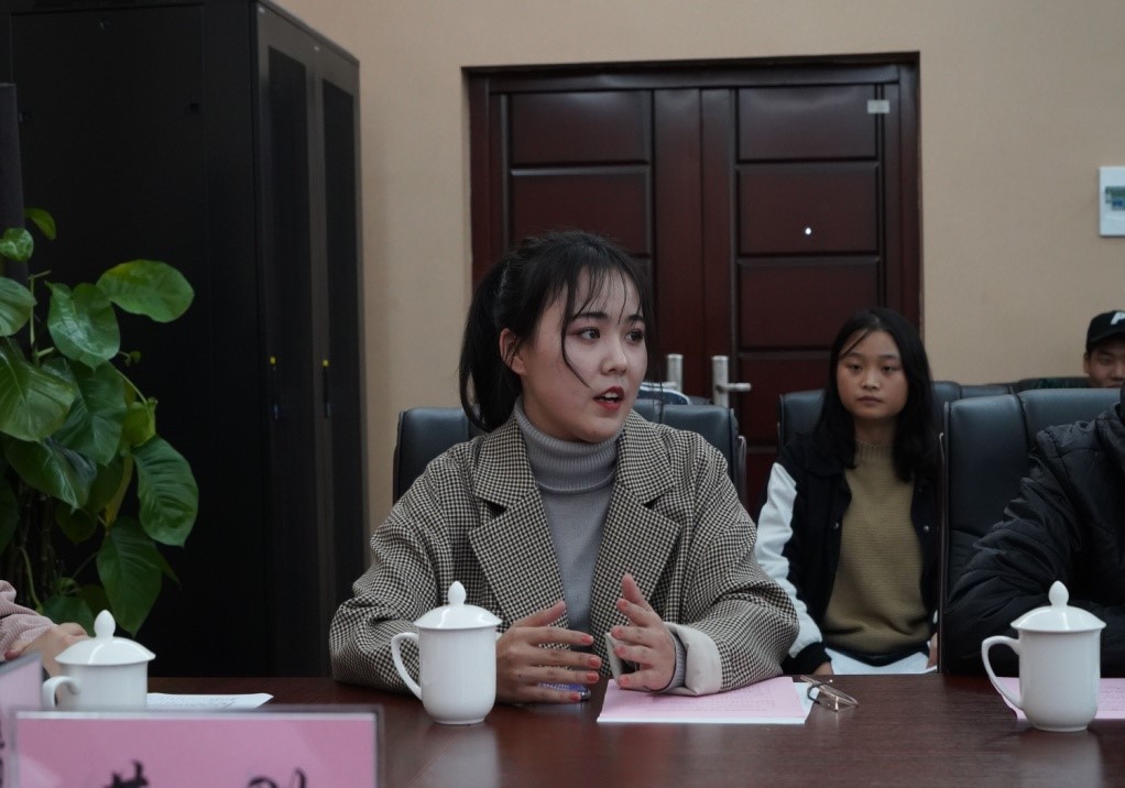 苏比努尔·阿合尼牙孜同学发言,她肯定了地大优秀的预科培养环境,并且希望学校可以考虑新疆籍的学生意愿,将没有分配计划(新疆籍学生)的专业在后期可以根据学生的志愿来分配。