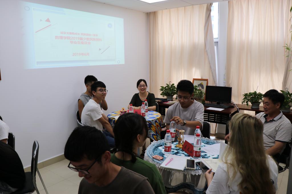 6月26日下午15:00点,澳门网投官网“诚挚关爱助成长,民族团结一家亲”2019届少数民族预科毕业生代表座谈会在东综A座1506“预科之家”顺利举行。澳门网投官方网站党委书记吴太山老师、外国语学院大学英语教研室刘敏老师、澳门网投官方网站大学数学教学部主任肖海军老师、澳门网投官方网站大学物理教学部魏有峰老师、预科班辅导员托乎尼牙孜以及15名预科毕业生代表参加此次座谈会,座谈会由托乎尼牙孜主持。