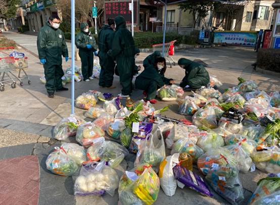 我们的主要工作是负责和定点的商超进行对接,统一收取小区居民在网上购买的各种生活物资,分拣完成以后再送到每户居民的单元楼门口,做到零接触的物资传递。对于那些孤寡老人和行动不便的人,我们会把东西送到家门口。在严峻的疫情面前,这样做能够尽可能的减少大家的外出,防止交叉感染造成的疫情扩散。