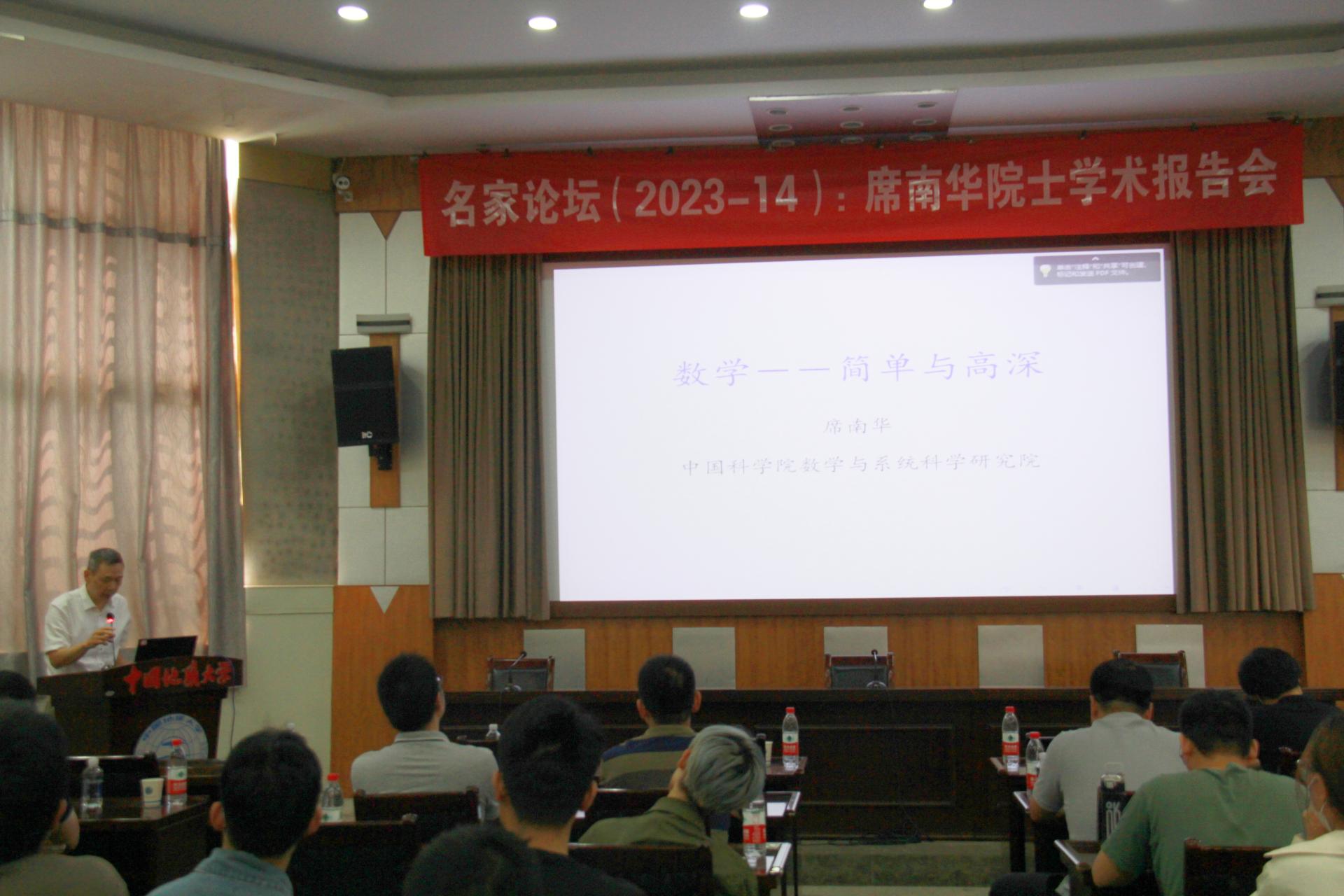 2023年5月27日,中国科学院院士、中国科学院数学与系统科学研究院研究员、上海科技大学副校长席南华教授应邀做客澳门网投官方网站名家论坛,在南望山校区八角楼学术报告厅作了题为“数学—简单与高深”的学术讲座。报告会由院长郭上江教授主持。